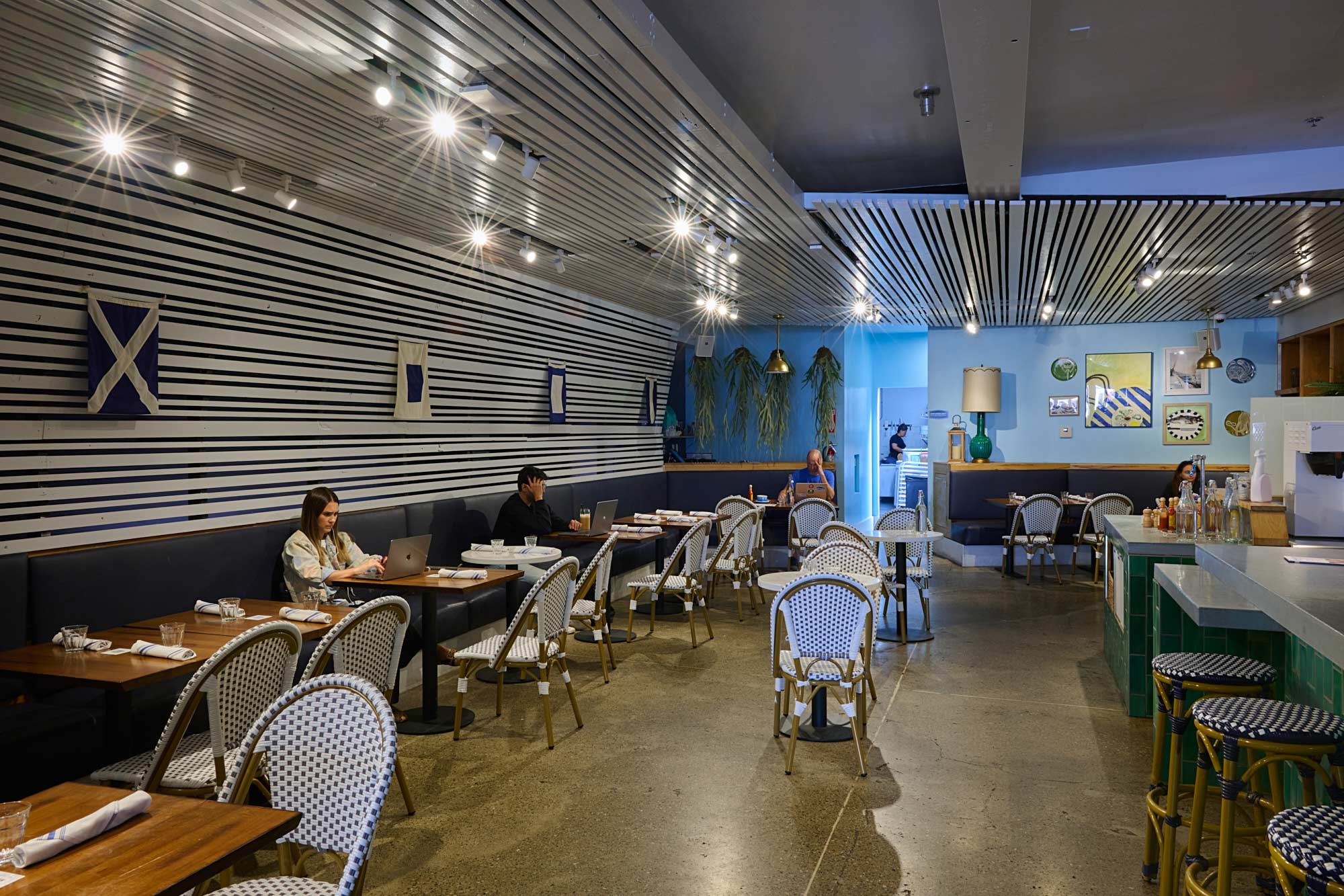 Set in San Francisco’s bustling Marina District, this fast-track restaurant project came with an ambitious 8-week timeline and strict noise constraints due to residential units above the space. Strategic scheduling and efficient manpower planning were critical to keeping the project on track. Our team optimized every working hour within the allowed noise windows to maintain productivity without compromising quality. Scope included a fully equipped commercial kitchen with an Ansul fire suppression system, rooftop mechanical units integrated with fire safety shutdowns, back-of-house lighting with T24 controls and daylight harvesting, complete GFCI protection for all branch circuiting, and comprehensive grounding and bonding upgrades per NEC Article 250.