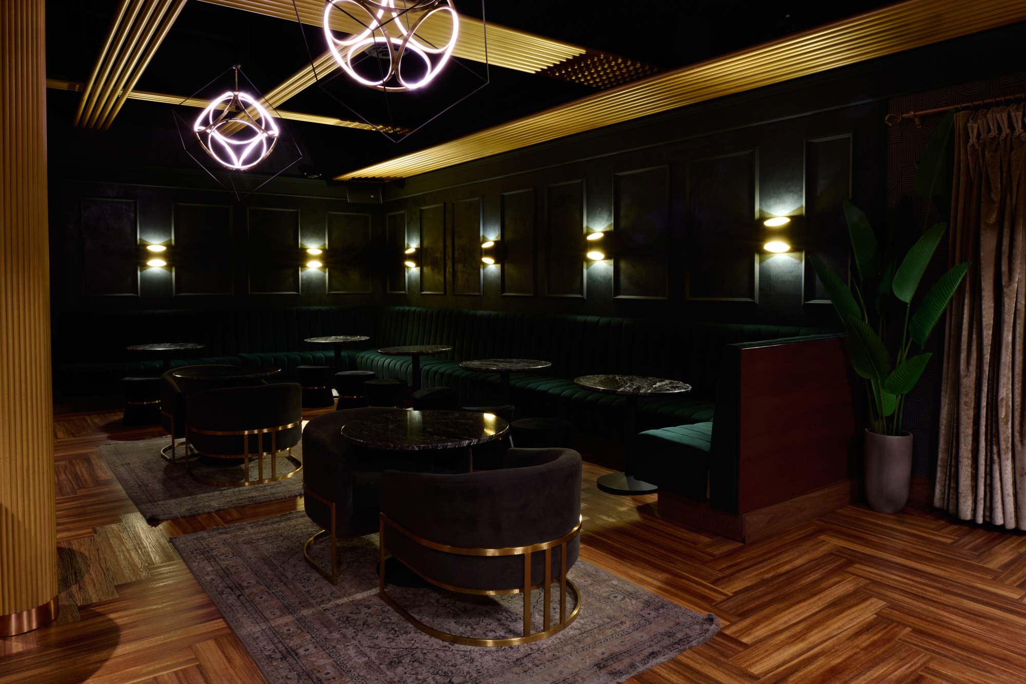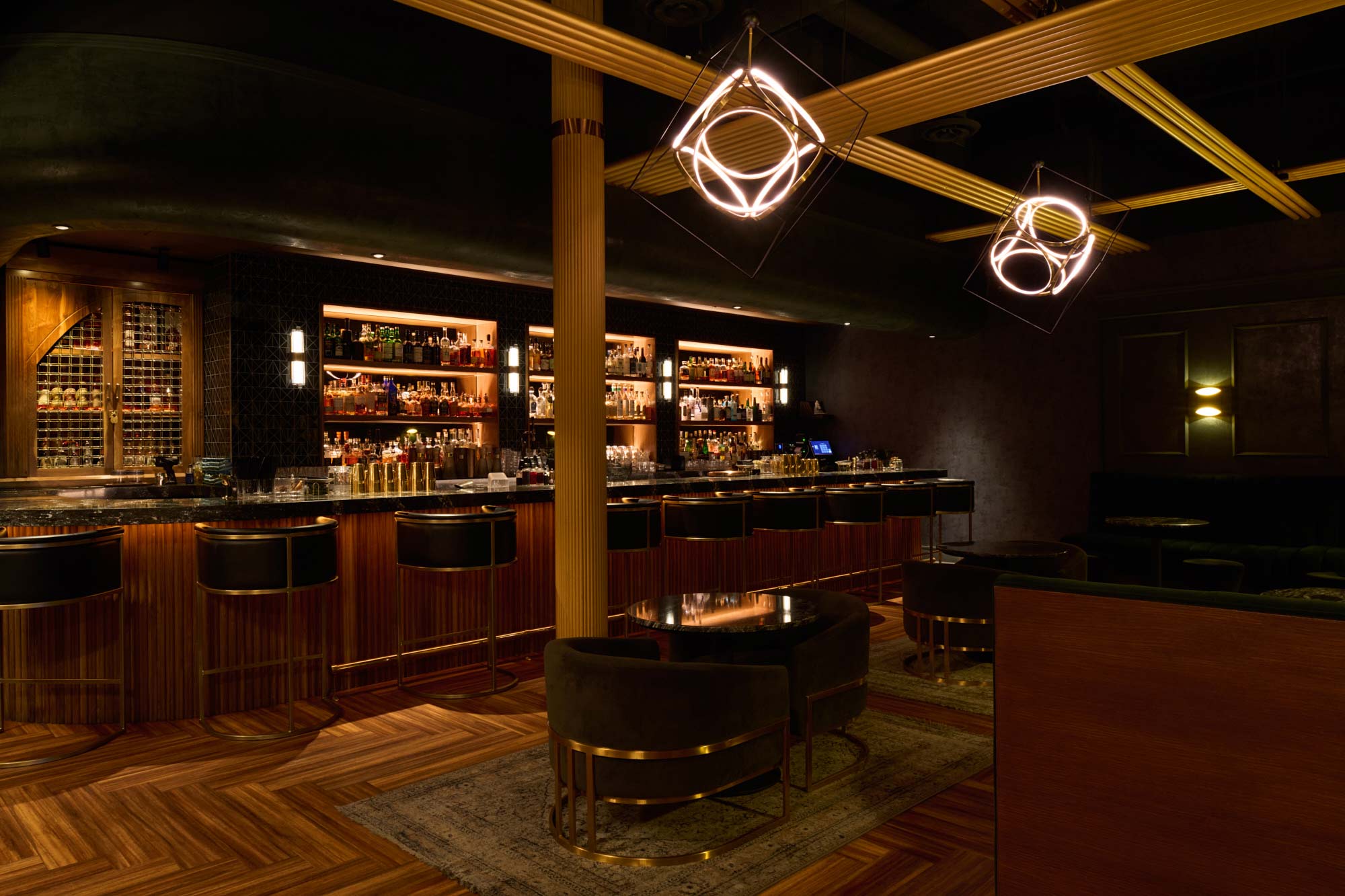 The nearly 4,000 sq. ft. transformation began with a full interior demolition, then a complete rebuild of the restaurant and bar’s electrical infrastructure. Scope highlights included new panels with dedicated feeders, a sophisticated architectural lighting package partnering with Rexel and ALR, updated GFCI protection throughout the restaurant and bar area for branch circuiting protection, and an advanced lighting control system with programmable scene settings to support special events and ambiance shifts.